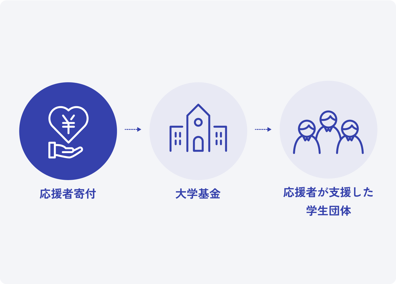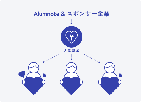 特定の団体に支援者が寄付をすると、大学基金を通じてその団体に活動資金として配分されます